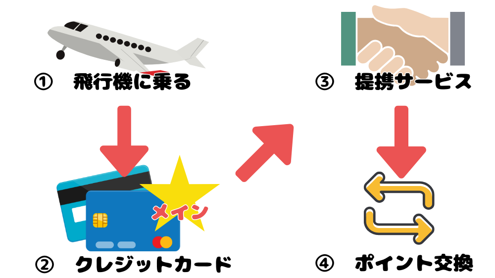 下図の順番に一般的にマイルが貯まるので、それぞれ紹介します。